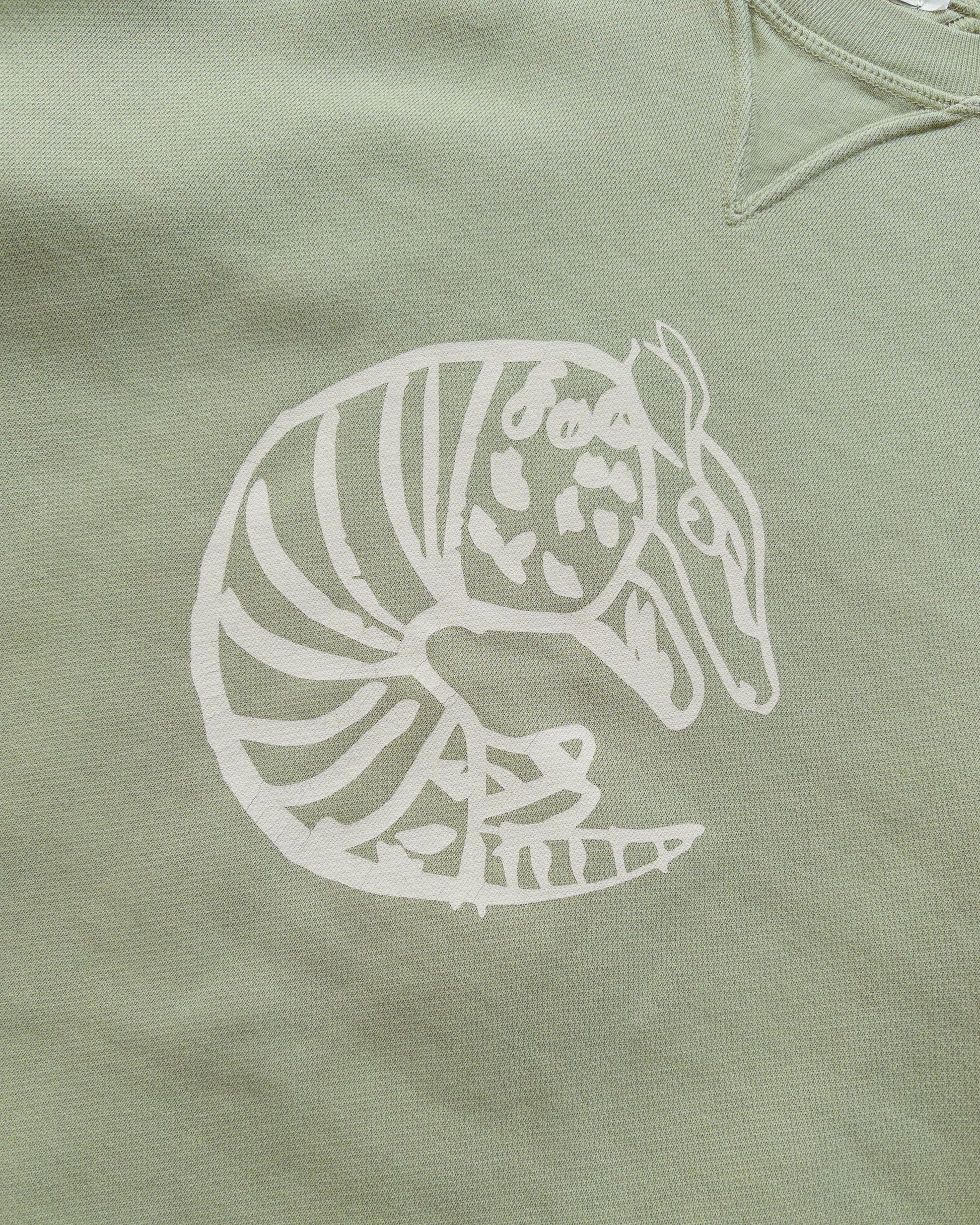 If you couldn't tell, we love the armadillo, especially in the FW25 collection. It's on sweaters, a guy's sweater who's on a sweater, and we even made armadillo belt buckles. Now you can have it on our sweatshirts.