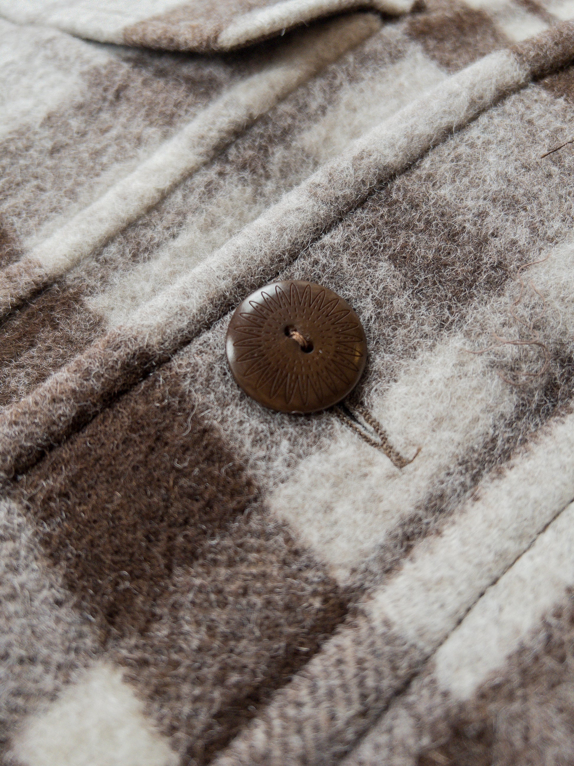 This new shawl collar model was a perfect way to show off the massive scale of the plaid. Unlike a traditional Casentino fabric, we went with a more even and dense finish on this cloth. But we can't wait to see how this fabric ages over time - we think it's going to get nice and hairy after a season or two of wear.