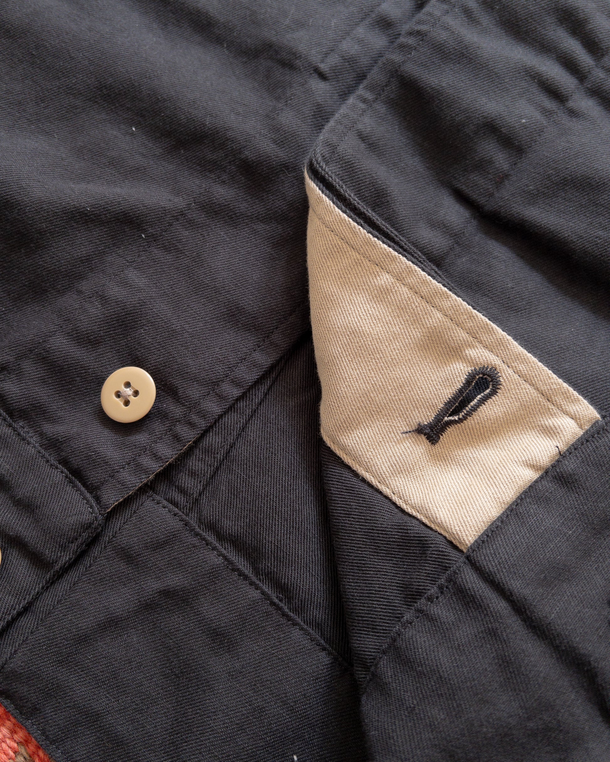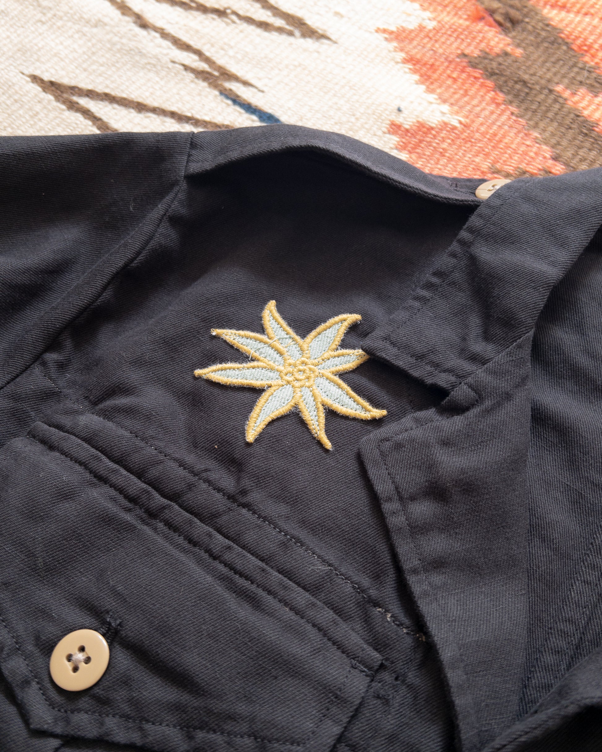 The Daytripper was originally thought up once we got our hands on a 1940s "austerity" British Battledress. We had been delving into 1960s Laurel Canyon culture (and more notably, the counterculture), Woodstock, Ken Kesey and his followers, etc. We really appreciated how these people wore and styled militaria. They were taking these masculine symbols of war and flipping them on their heads- they'd cut them up, repurpose them, decorate them with their own DIY patches and embroideries, and really change how these garments were viewed, and changed what they represented.