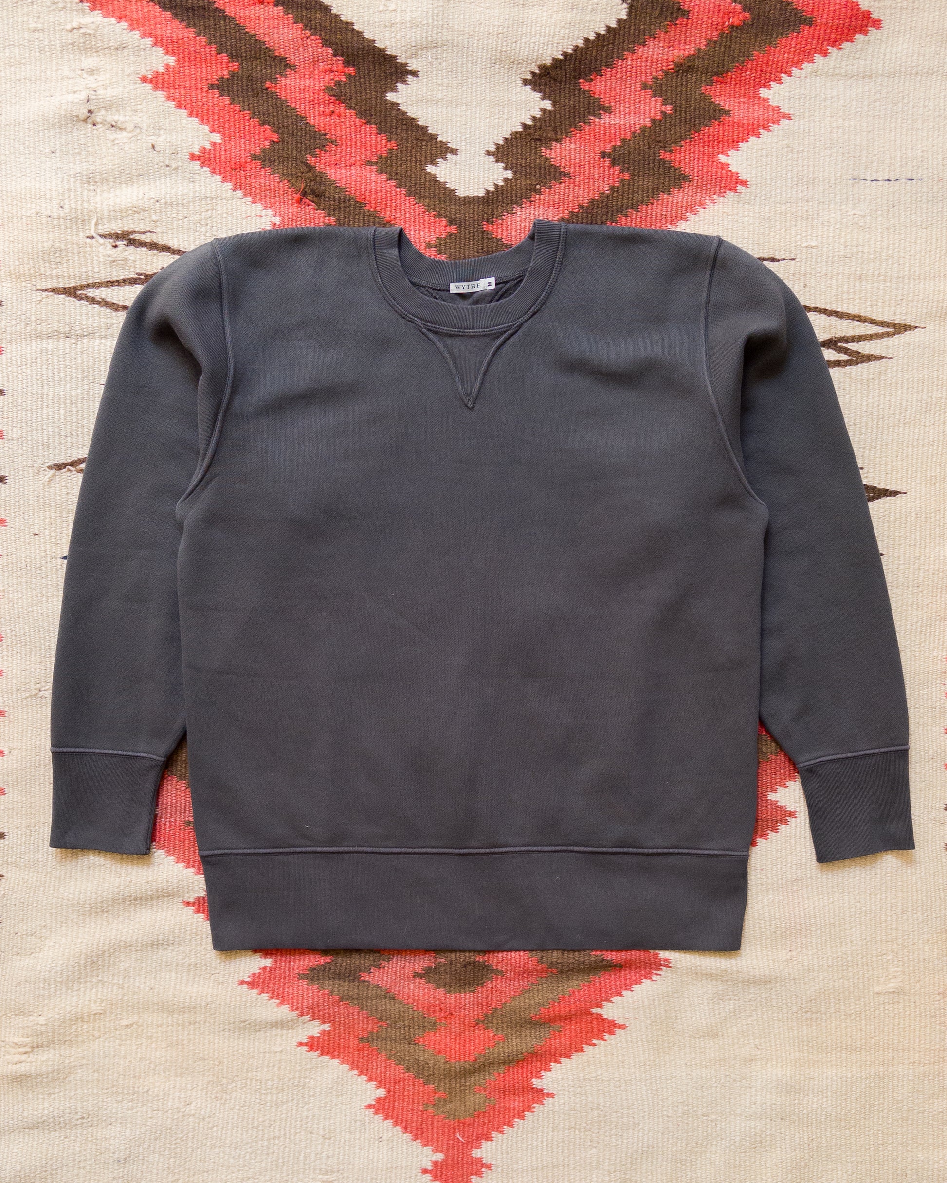 Cotton Sweatshirts were first used as athletic garments in the 1920s and 30s and always featured full length ribknit cuffs and hems, and V-shaped inserts in the neckline. The Wythe Sweatshirt stays true to these details, and adds a subtle curve into the V insert (lovingly called "Doritos" by some vintage aficionados) that gracefully matches the curve of the neckline.