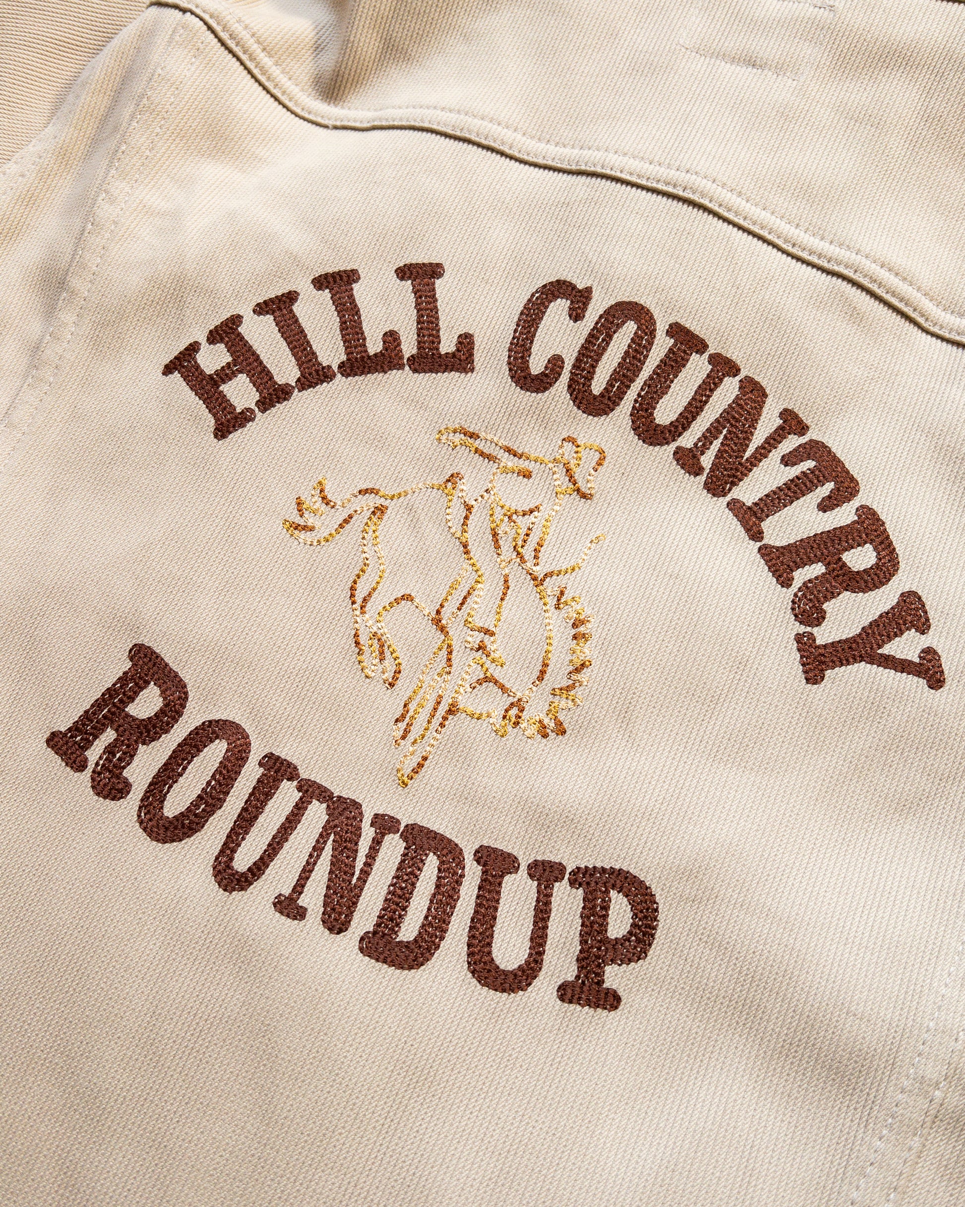 See you at the roundup! We made an extremely limited run of our Bedford Cord Jackets chainstitch-embroidered right here in NYC with our "Hill Country Roundup" motif across the back.