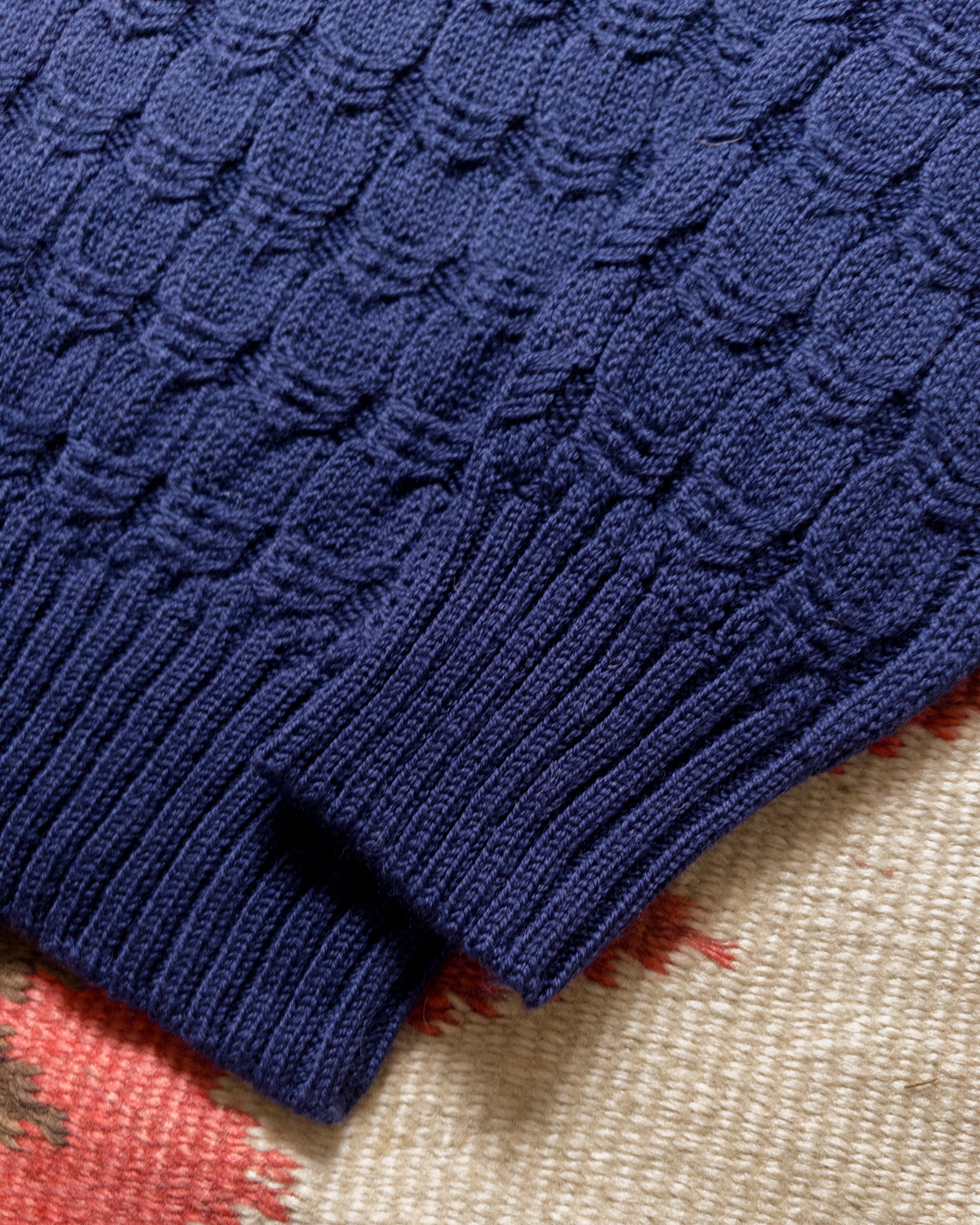 The cableknit sweater has clear and defined roots in vintage clothing. We kept pulling these cableknit sweaters out of our archive and continually said "wow, these are really good" enough times where we knew we had to make some ourselves. Inspired by older ivy sweaters, we worked with our new knitting parters in Peru to really knock these out of the park, and were able to come up with our own knitting pattern in the process.
