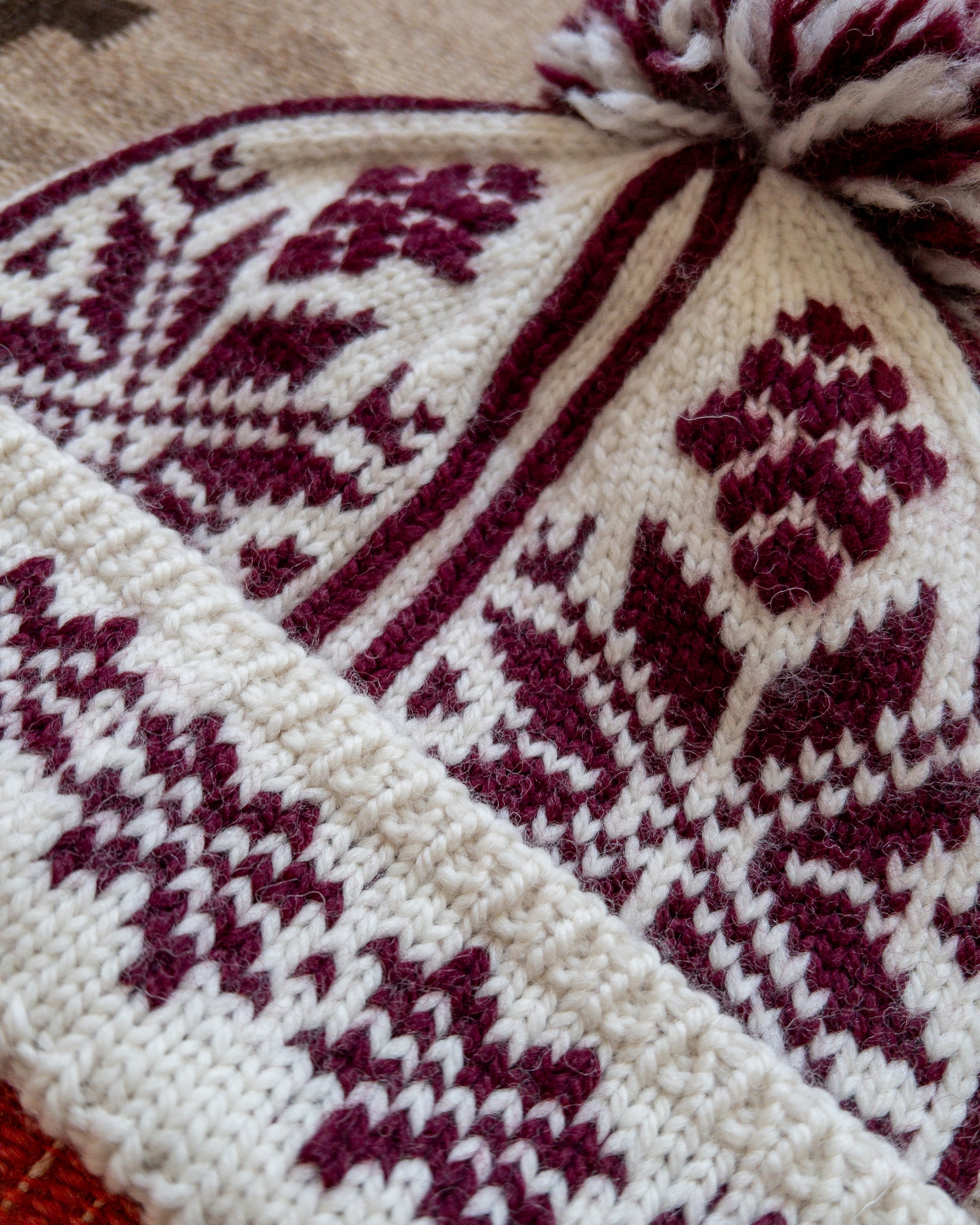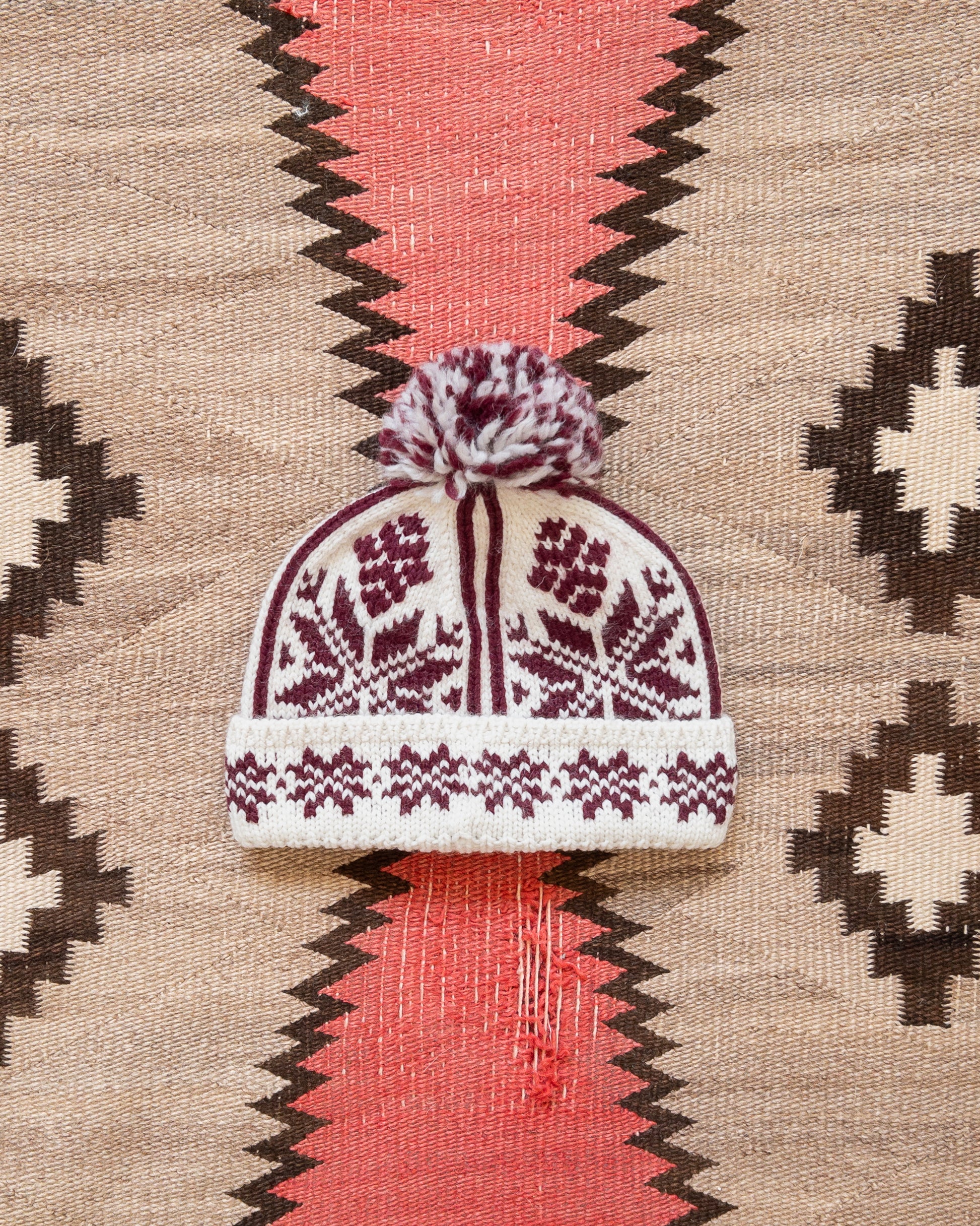 Jacquard Pom Beanie - Bordeaux