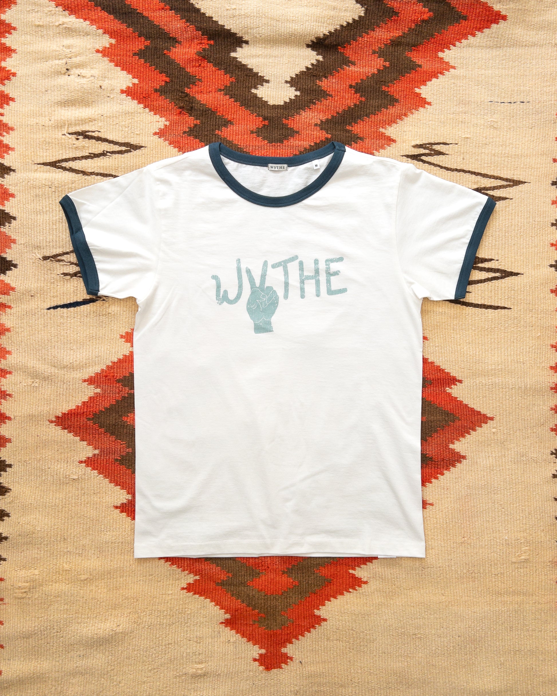 After scouring our archive for some of our favorite 60s ringers, we were inspired to start playing around with some common themes from that era. The "Peace" Wythe motif we came up with felt very fitting for a 60s-inspired ringer. This new ringer is built on our same tubular t-shirt body, but with a slightly narrower neckline and slightly longer sleeves for a more classic look.