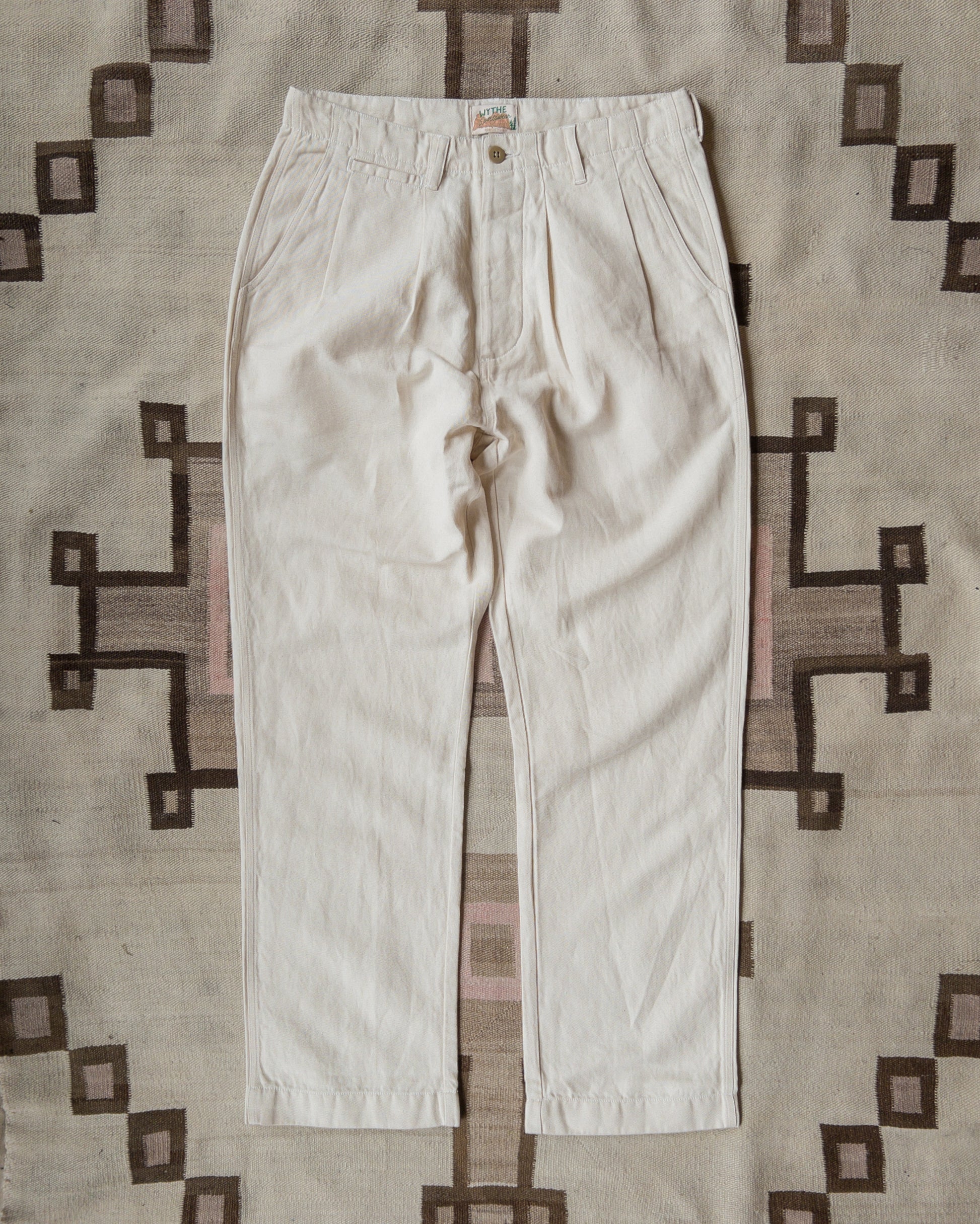 Pleated Cotton Linen Twill Chino - Unbleached