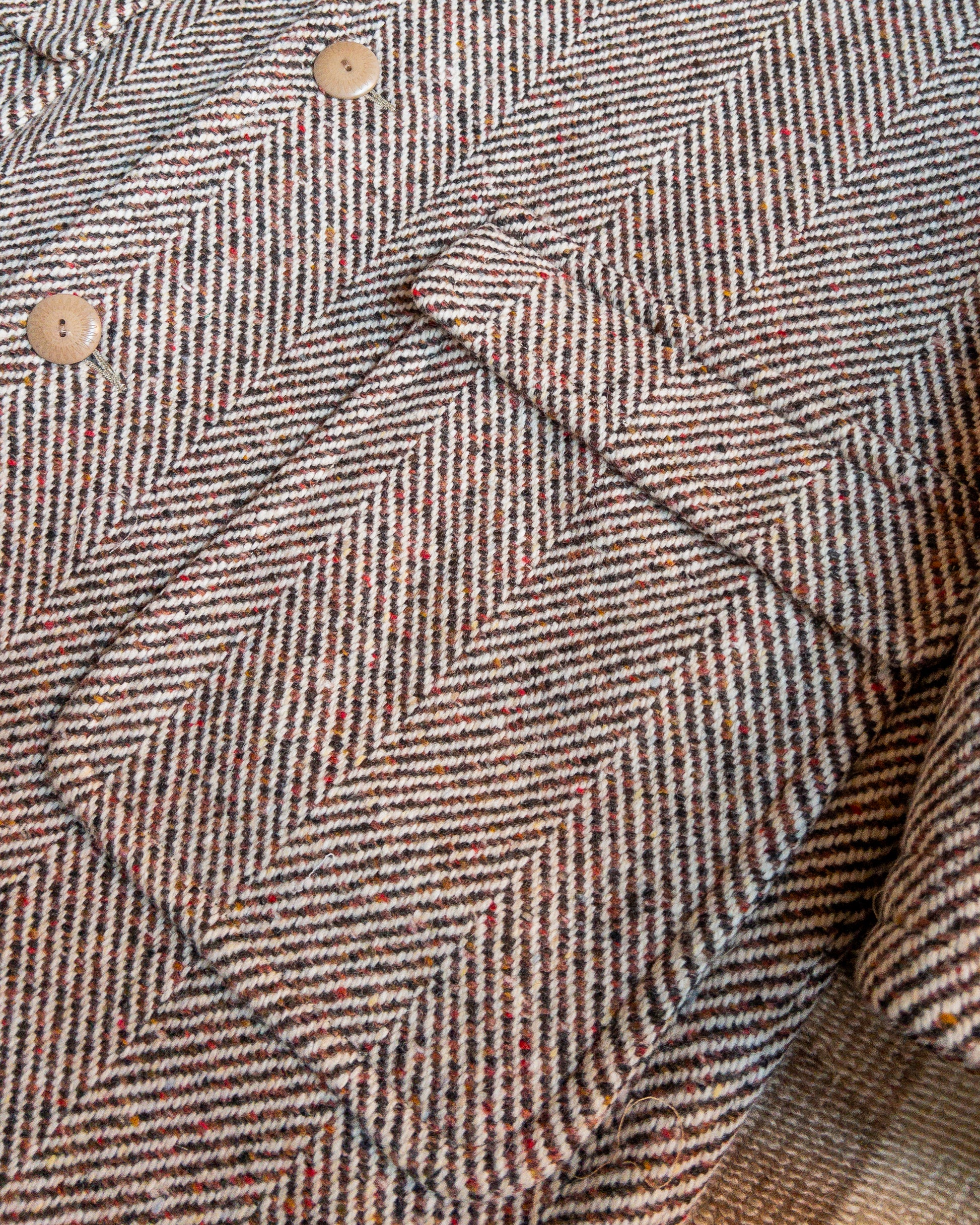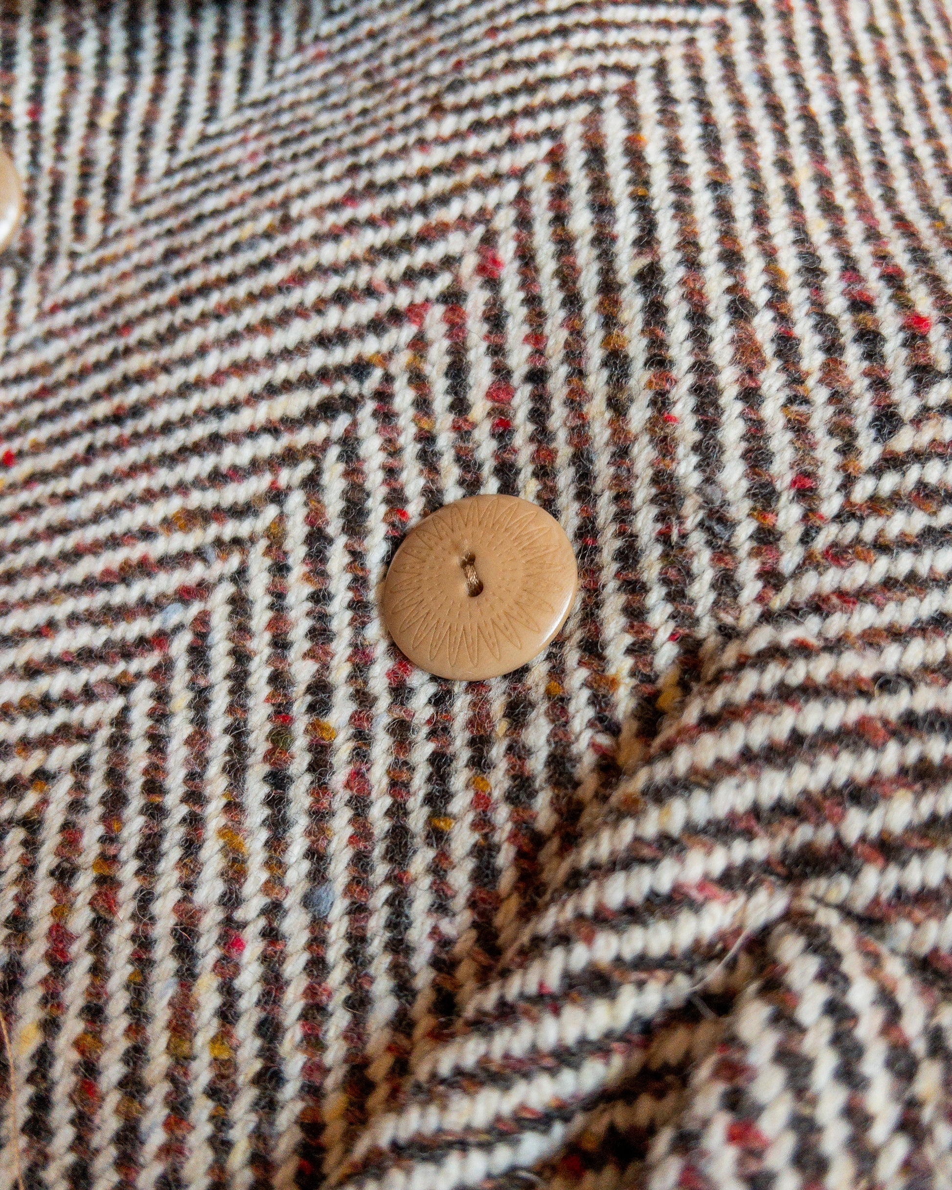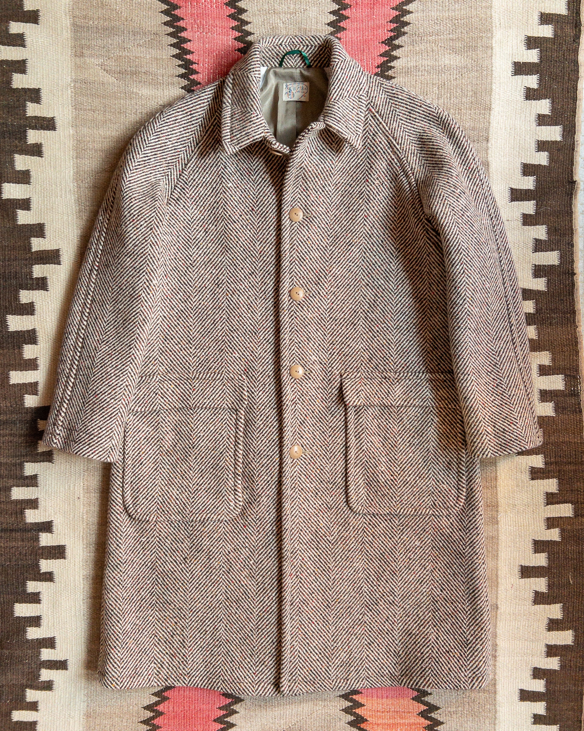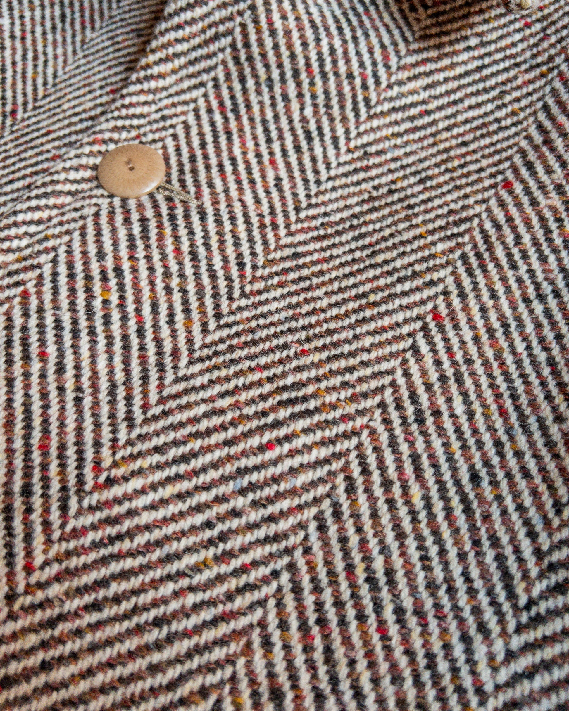 Another winter, another tweed raglan. The custom yarns we developed with this mill are beefy, yet compact and will relax with wear. You'll notice out of the package the fabric will feel somewhat smooth and uniform, but it's going to become hairier and softer over time. The Raglan sleeve is voluminous and allows for ease of movement and a great shoulder line. The collar is large (as all good collars are) and looks just as good flipped up to block the wind and frame the face as it does put down (strongly suggested to keep it flipped up though). There is a detachable throat latch (which comes stashed inside the front placket) for when things get really blustery. All in all, this is our ideal coat and will serve both its first and likely a couple of owners after that.