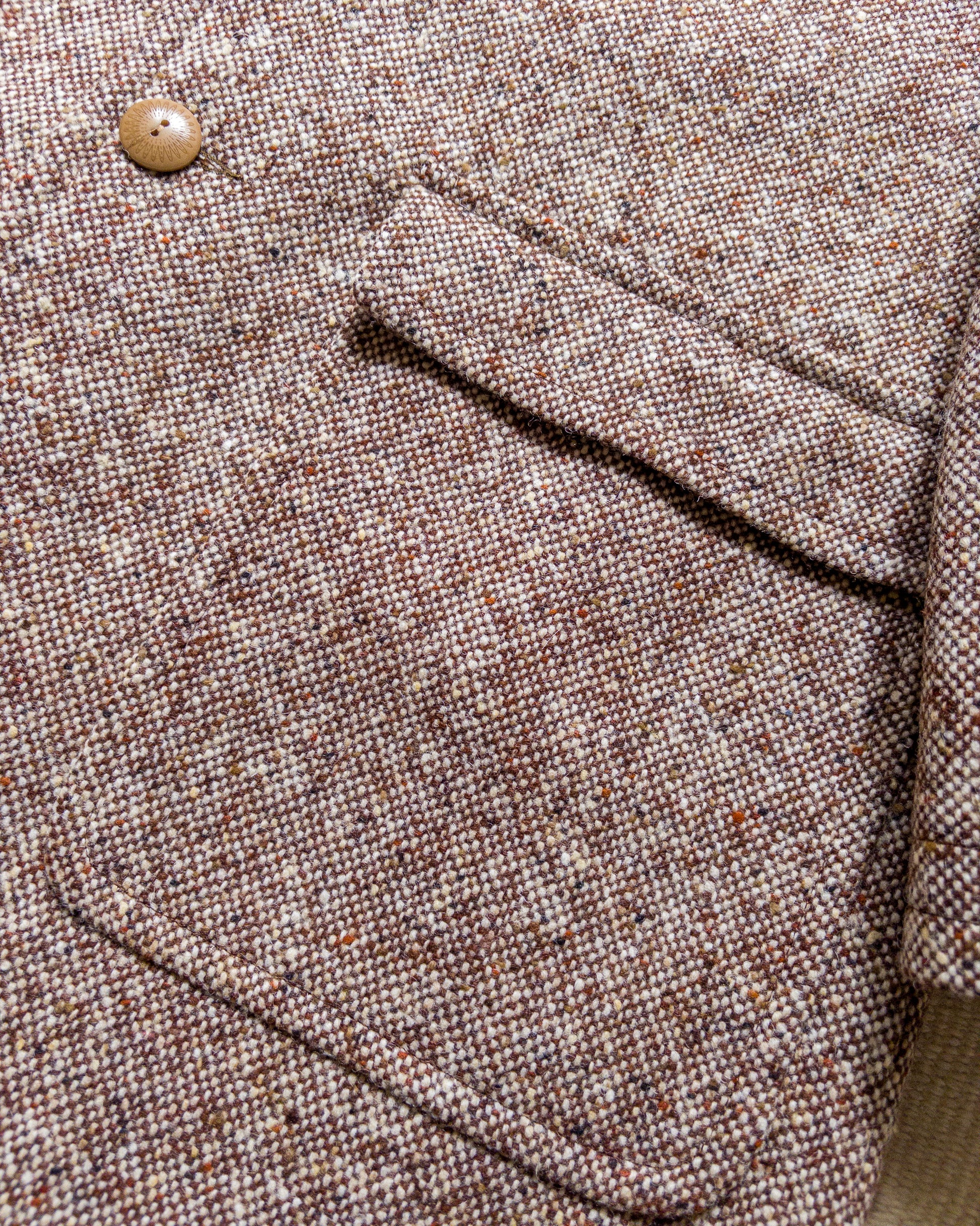 The Malted Barley Slub Donegal is our new development for this season and is particularly special to us. When the current family member who runs the mill in Donegal found a sportcoat from the 40s using fabric his relative helped weave, he knew he wanted to bring it back to Ireland with him. At last years development meeting, he was showing us the fabric and we loved the depth of color, yarn irregularity, and overall finish of the fabric, so we wanted to redevelop something similar in a coating weight.