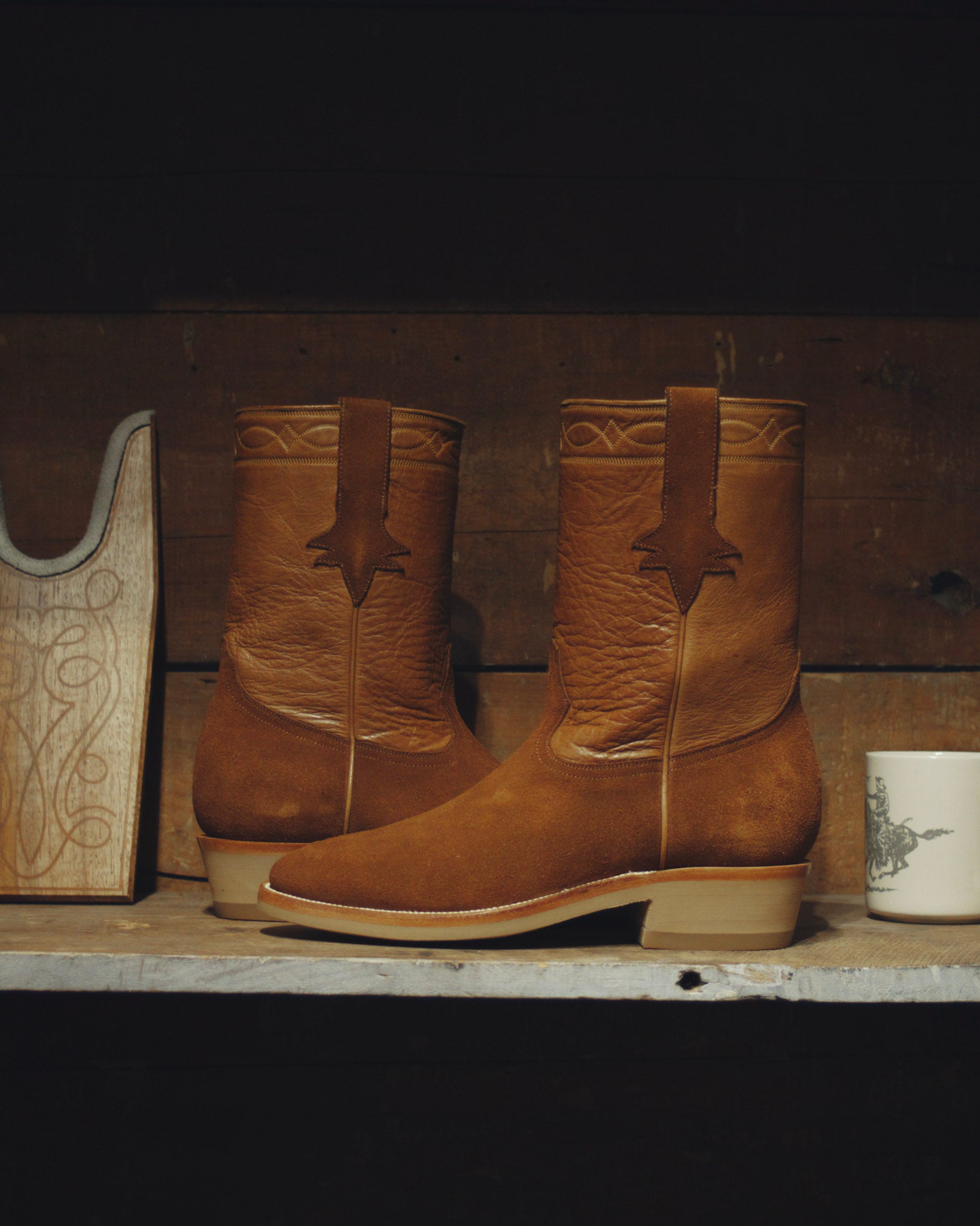 Two tone ropers! Two tone ropers! The Ranchero Roper Boot features the front and back of the same hide. Utilizing the roughout and the leather makes for a killer two-tone boot that will only look better with age.