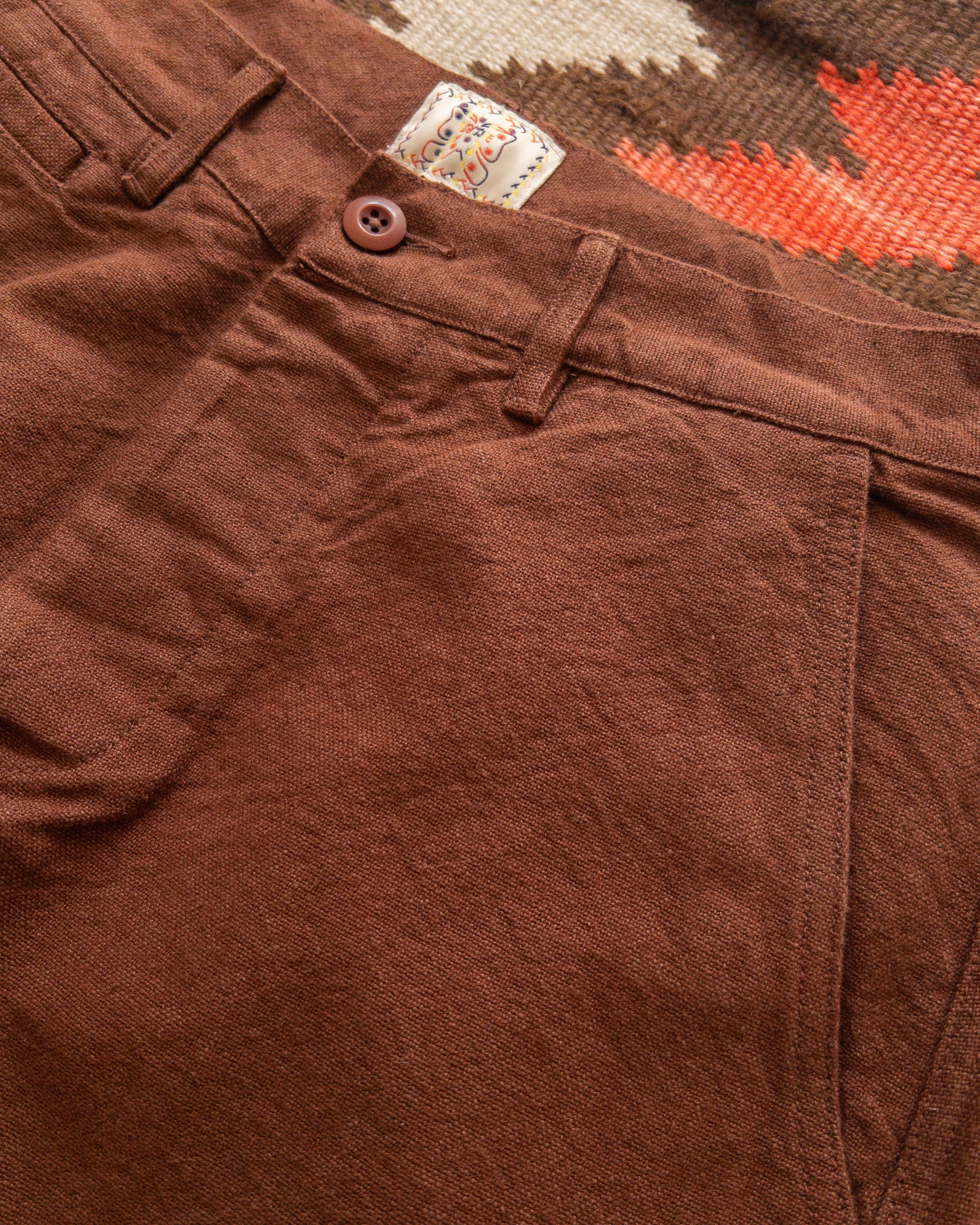 We love how this cotton/linen canvas breaks down and wears in over time. These are gonna be your absolute favorite pair of pants a month down the road. As you beat 'em up a bit, you'll start to notice the structure becoming a bit more pronounced as well. We field-tested these in the dead of summer and the open weave paired with the blend of cotton and linen made for a great warm-weather option.
