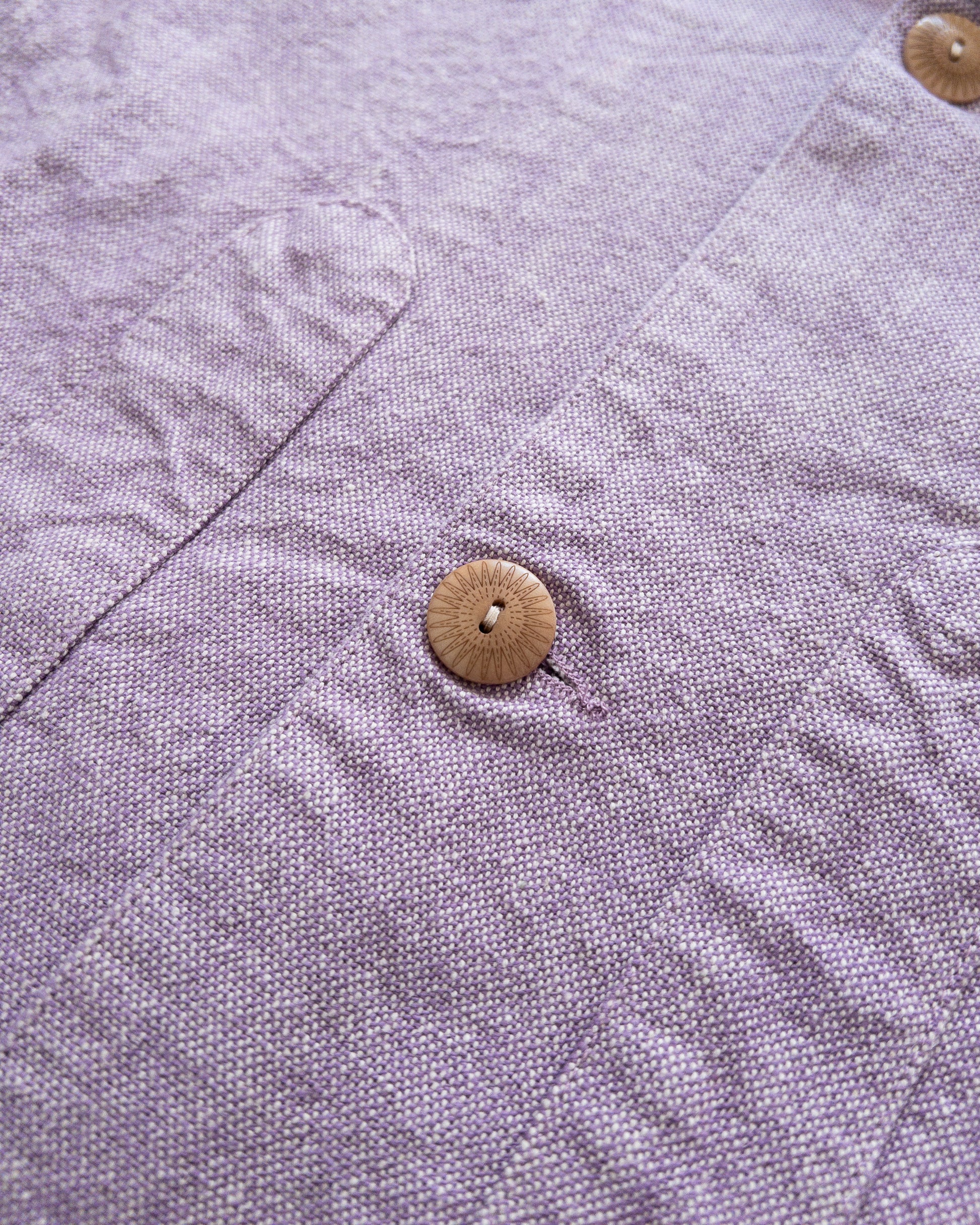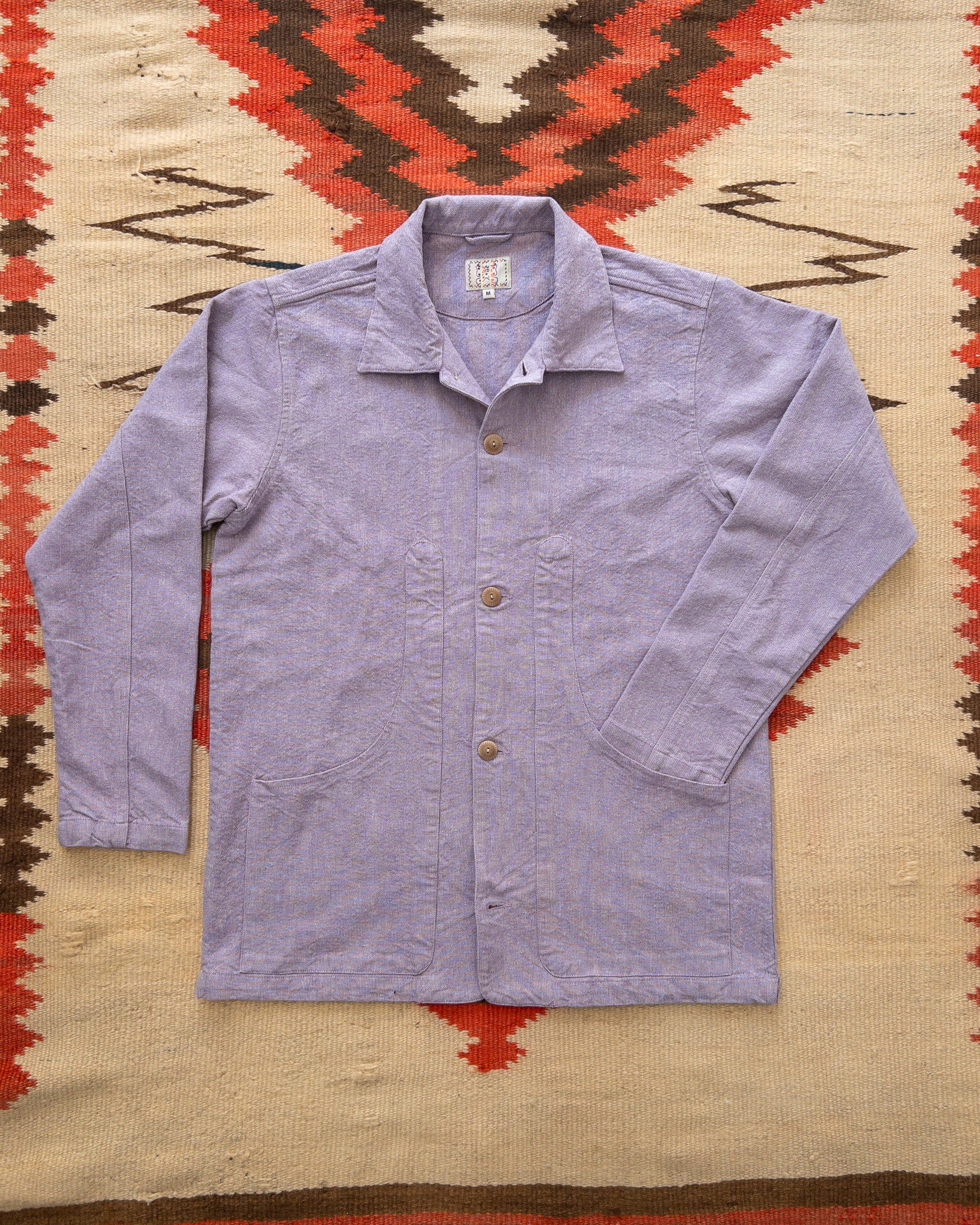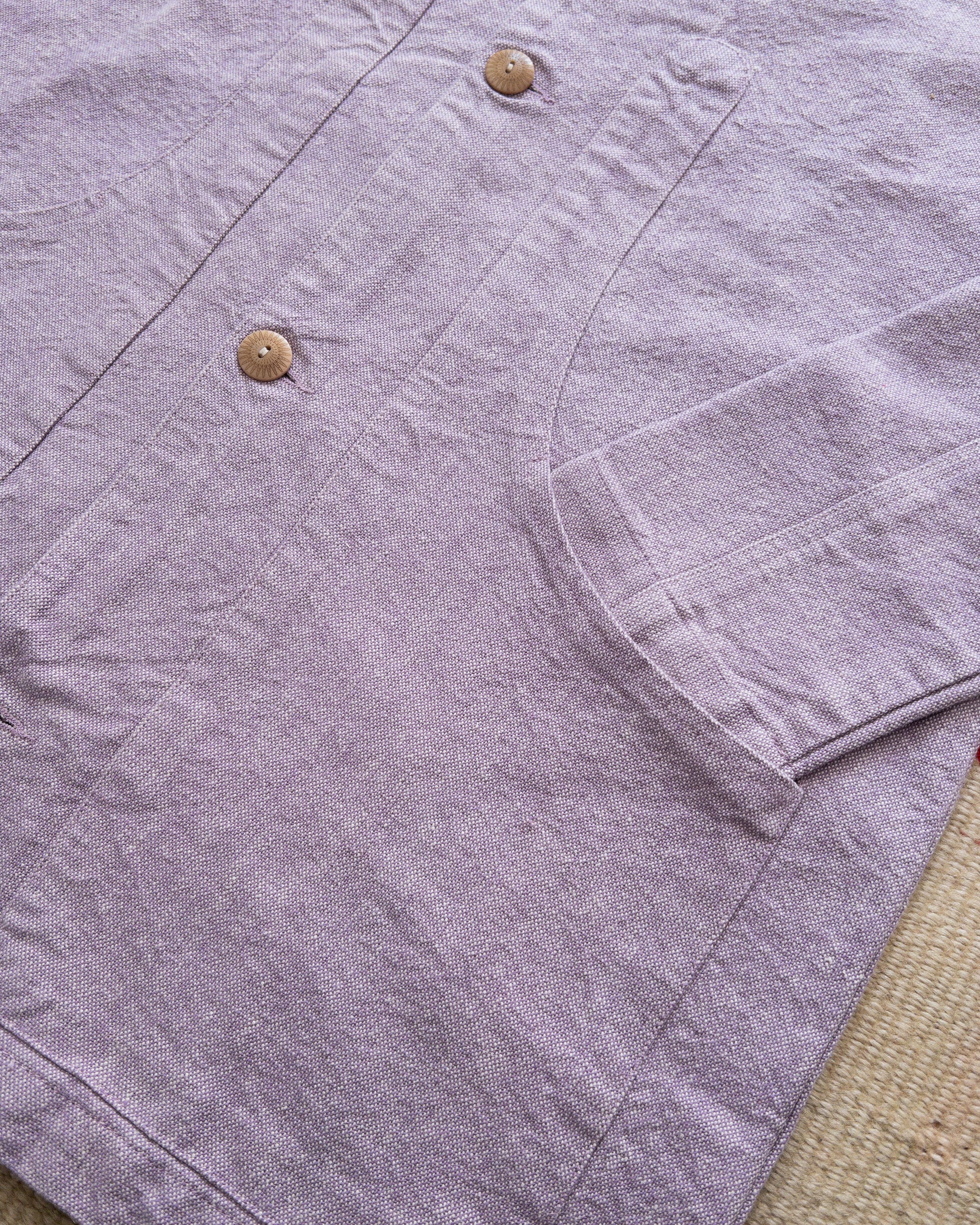 We'll never miss an opportunity to use an undyed yarn. There's somethin about a yarn's natural color that admire, and especially watching that natural color age and fade with wear. We worked with our partnering mill to develop this cotton/linen canvas. It features a special twist in yarns which allows the canvas to have structure but also be open and airy. We love wearing it over a tee or tank top for some easy summer layering. This ain't your average chore coat!