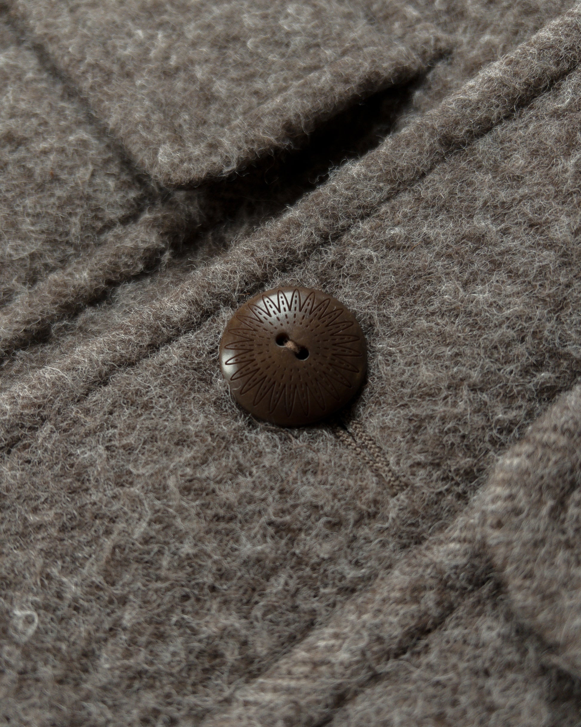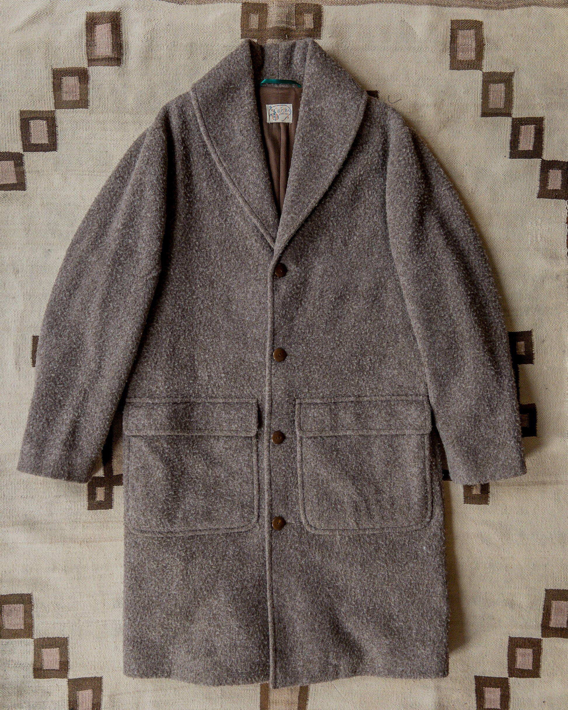 This coat is like a fuzzy soft robe you can wear outside. The custom-developed Casentino turned out beautifully made up in our shawl collar model, draping well in all the right places.