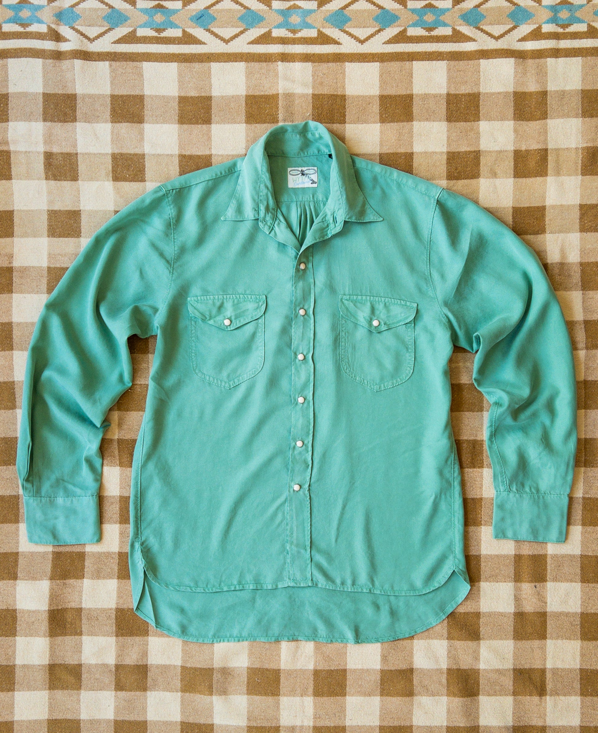 The gabardine pearl snap is made of a moisture-wicking Tencel that will also breathe on warm summer days. Reminiscent of the dress shirts Cowboys would wear in the American Southwest, the tencel pearlsnap shirt drapes comfortably for an easy warm weather fit.