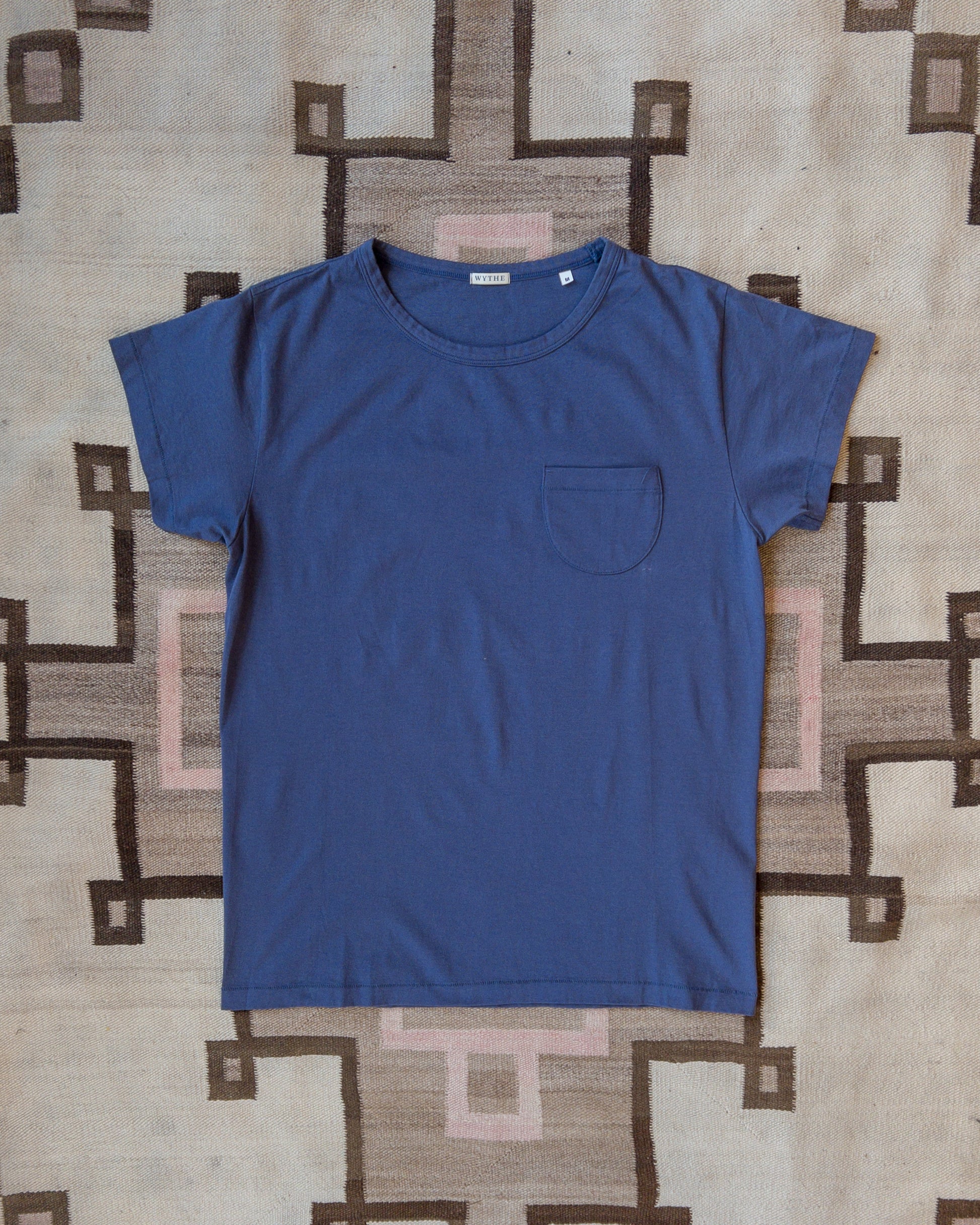 Tee shirts came into Americans wardrobes from GIs returning from the second World War, and the shirts change much in style until the late 60s. This Tee is Wythe's homage to those early originals. Organic cotton yarns are knit slowly into a tube on vintage machines in different dimensions for each size before it is cut, sewn, and dyed. This is much more time intensive set up but results in an authentic tee shirt that doesnt have side seams for a more comfortable tee shirt that gets softer with every wash. The Wythe Tee comes with a small chest pocket and is pre washed and softened.