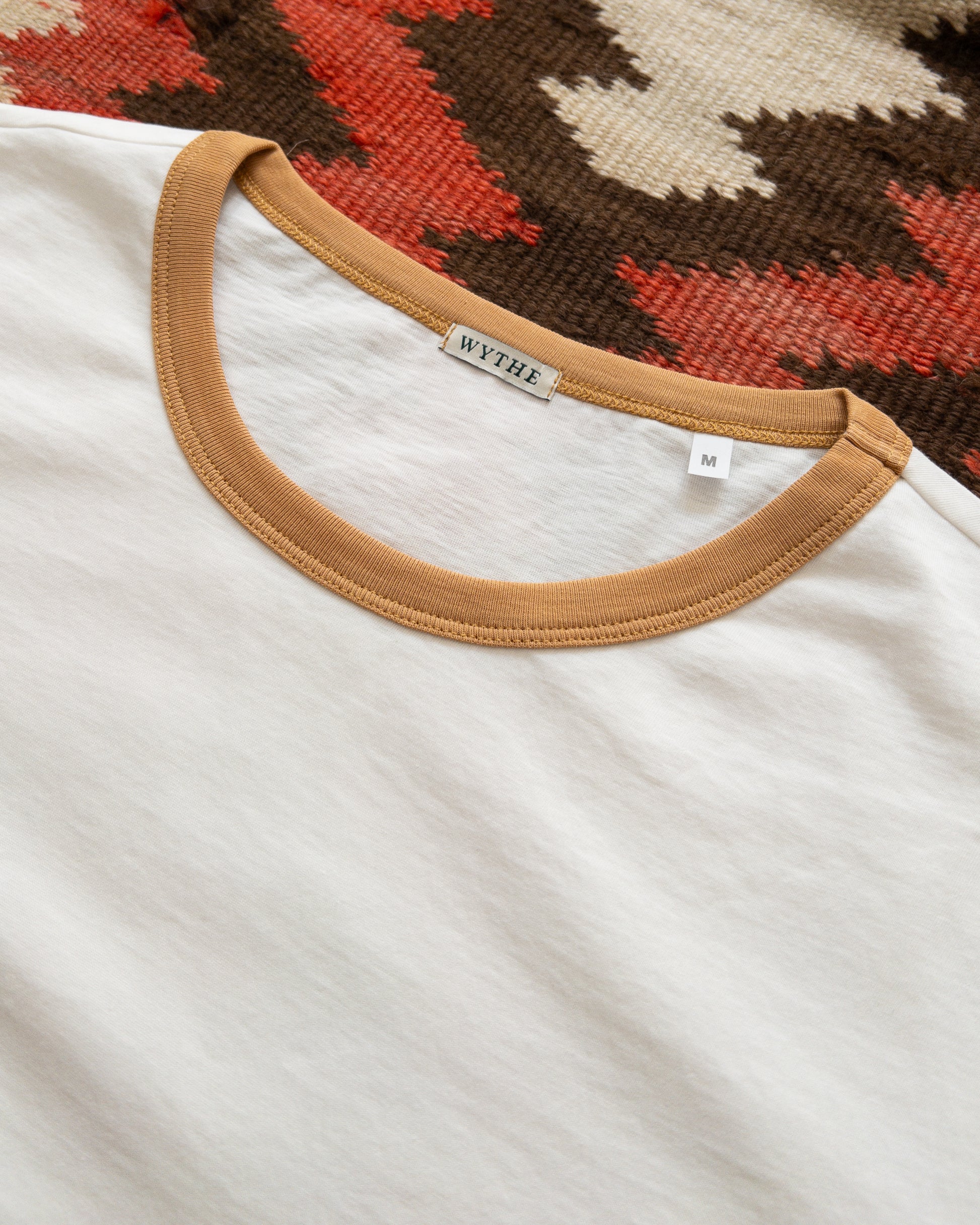 This new ringer is built on our same tubular t-shirt body, but with a slightly narrower neckline and slightly longer sleeves for a more classic look.