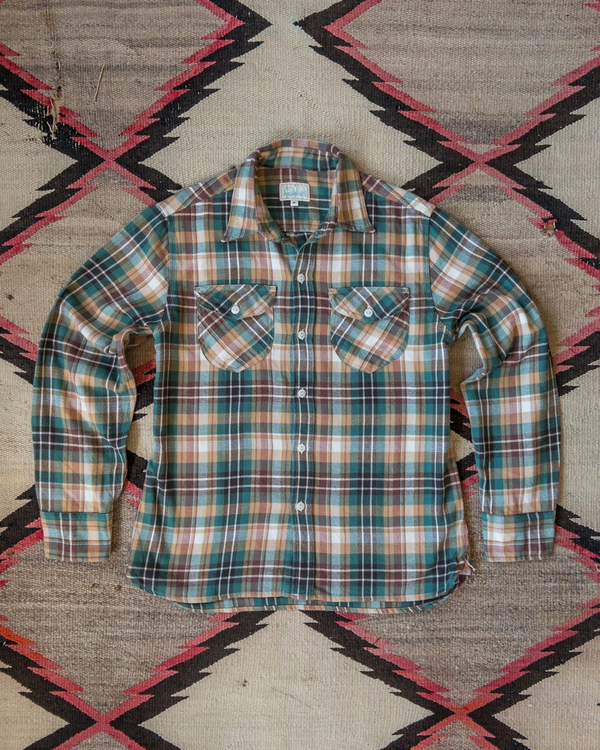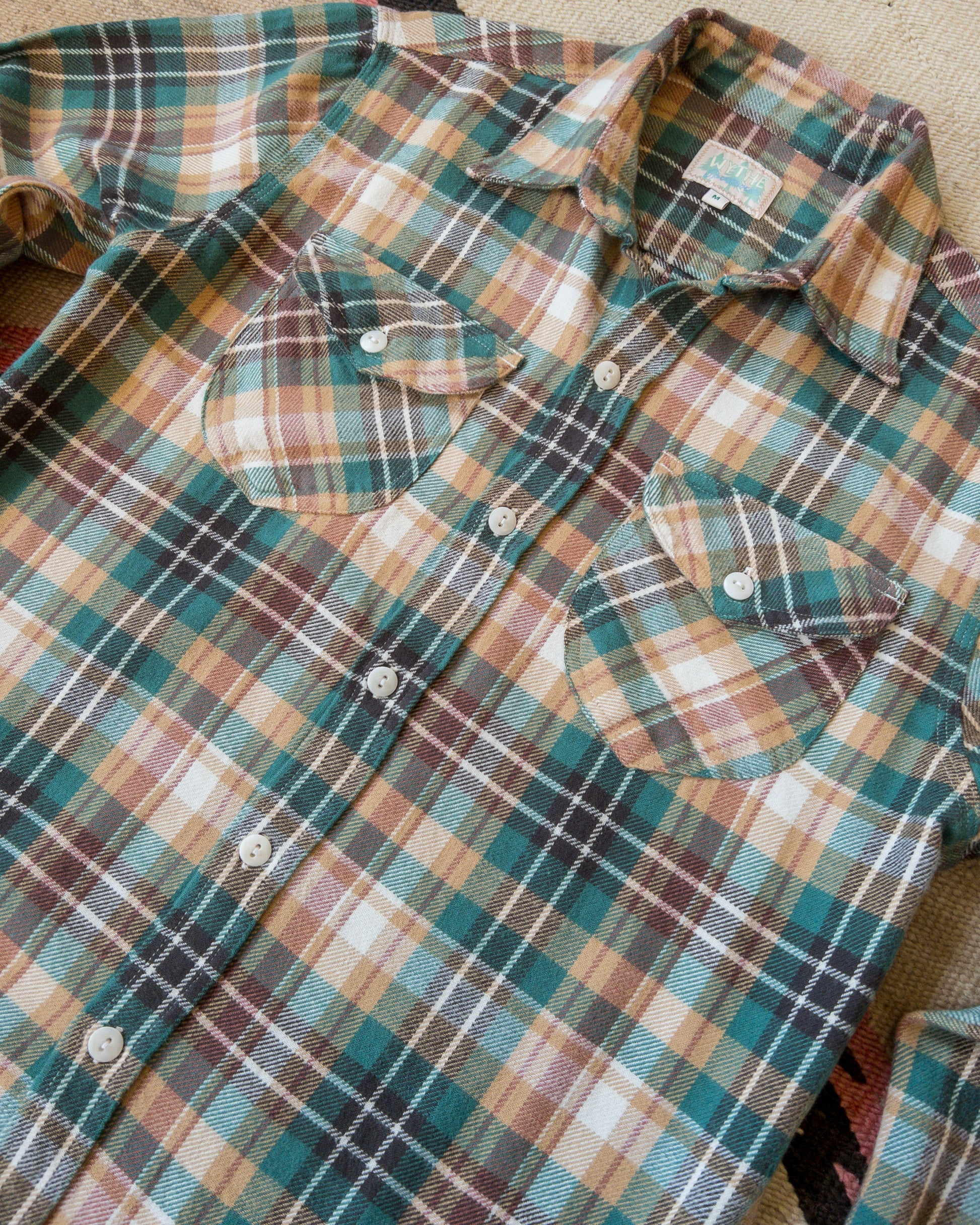 Of the many things I dreamed of making for Wythe, flannel plaids were at the top of the list. There is not much more American than a well worn flannel shirt. There are also very few things that are easier to screw up than flannel plaids. Most of yall know it is very easy to get overwhelmed by the amount of scratchy, papery, rough, and just plain unattractive plaids that have been made and are still being made. It only takes a couple of poor quality examples to really make you think twice about which brand you are buying your flannels from. I knew that when I finally had the resources for a Wythe flannel I absolutely had to take it seriously, and luckily the absolute best factory in the world for these types of flannels thought what I was doing with Wythe was pretty cool. They were willing to start small with me and waive their normal minimums and surcharges so that we could really get the quality on point at an affordable price. These flannel workshirts and pearlsnaps are a real labour of love from all areas and comes from hundreds of hours scouring vintage stores, private sellers, and pouring over hundreds of historical black and white photographs looking for that perfect layout or shade combination. These are the real deal. Every single yarn is spun to the right size and shade to evoke the soft yet hearty flannels coming out of the American west in the 1920's-60's worn hard on the backs of farmers, miners, cowboys, loggers, and just plain old hippies doing their best to stay warm and stay outside as long as they could.