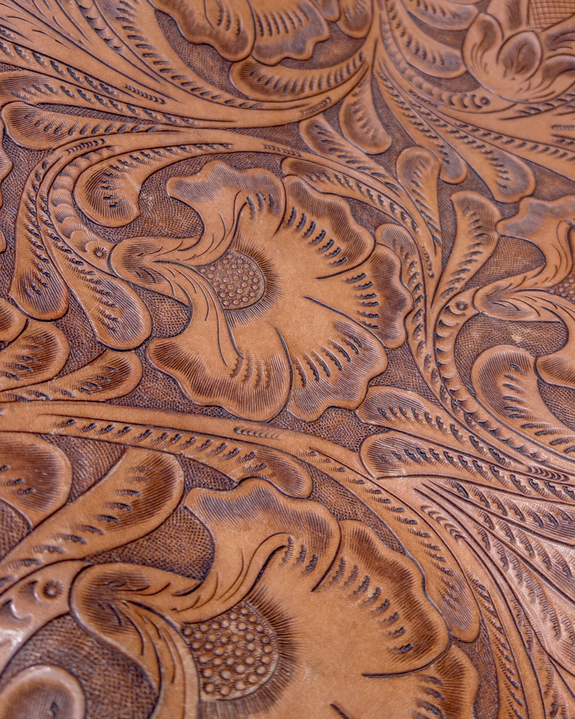 Each of these weekend totes are handmade in an atelier in Mexico by some of the world's most skilled leatherworkers. They're slowly and methodically tooled and carved panel by panel. Each tote is unique due to the handmade nature and will develop a beautiful and rich patina with use over the years. Handles are reinforced with "WYTHE" branded copper rivets.