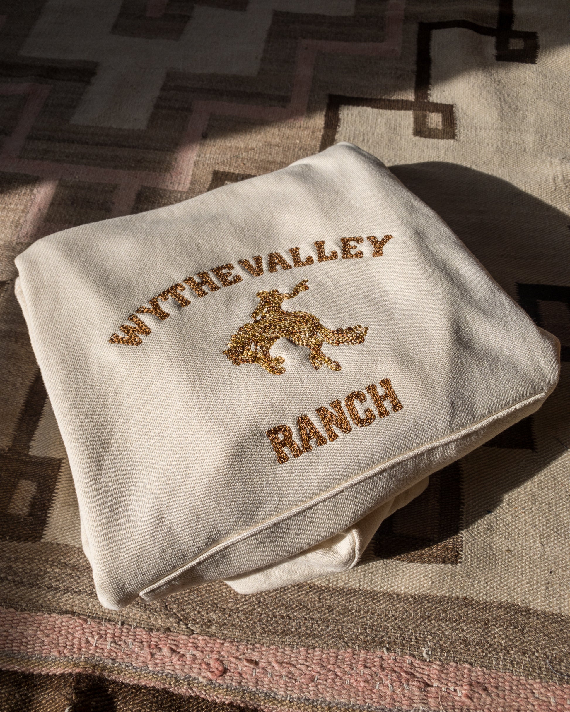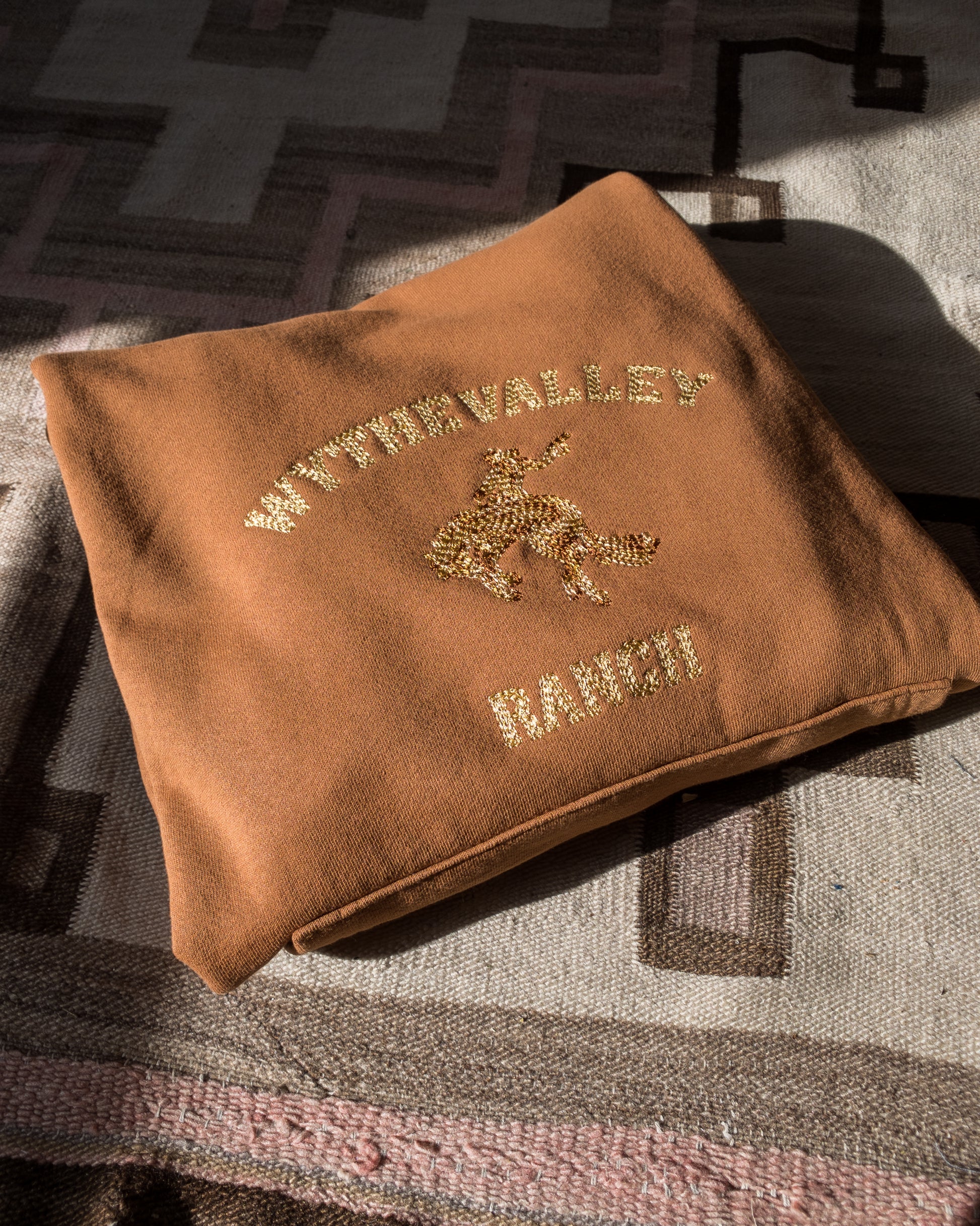 The embroidery is based on the logos for dude ranches that started popping up during the 30s and 40s, as cattle ranching became less of an opportunity, and dude ranches became more popular ways of showing people out East how people in the West lived.